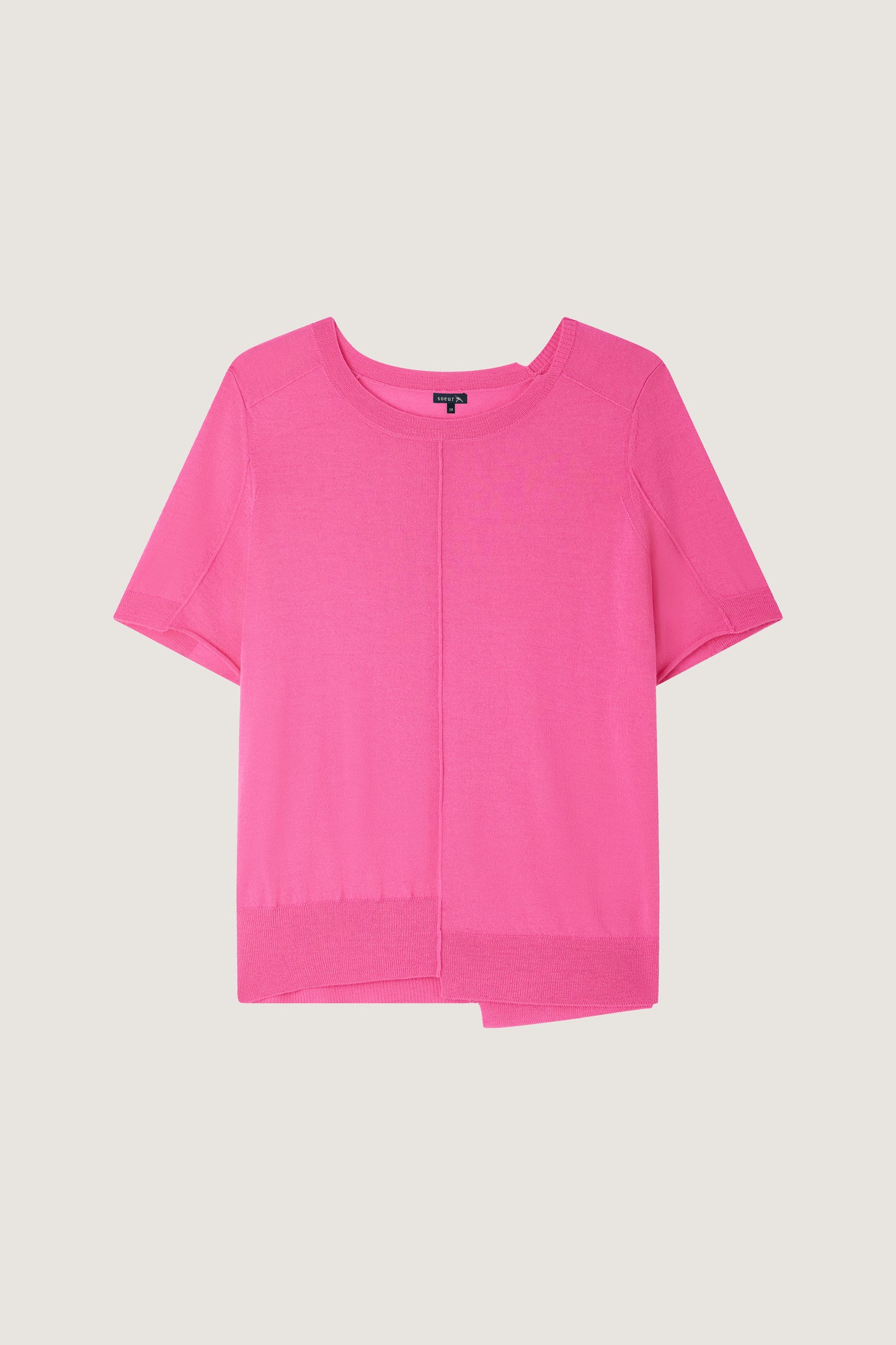Jersey rosa de manga corta de lana merina extrafina con ribetes asimétricos